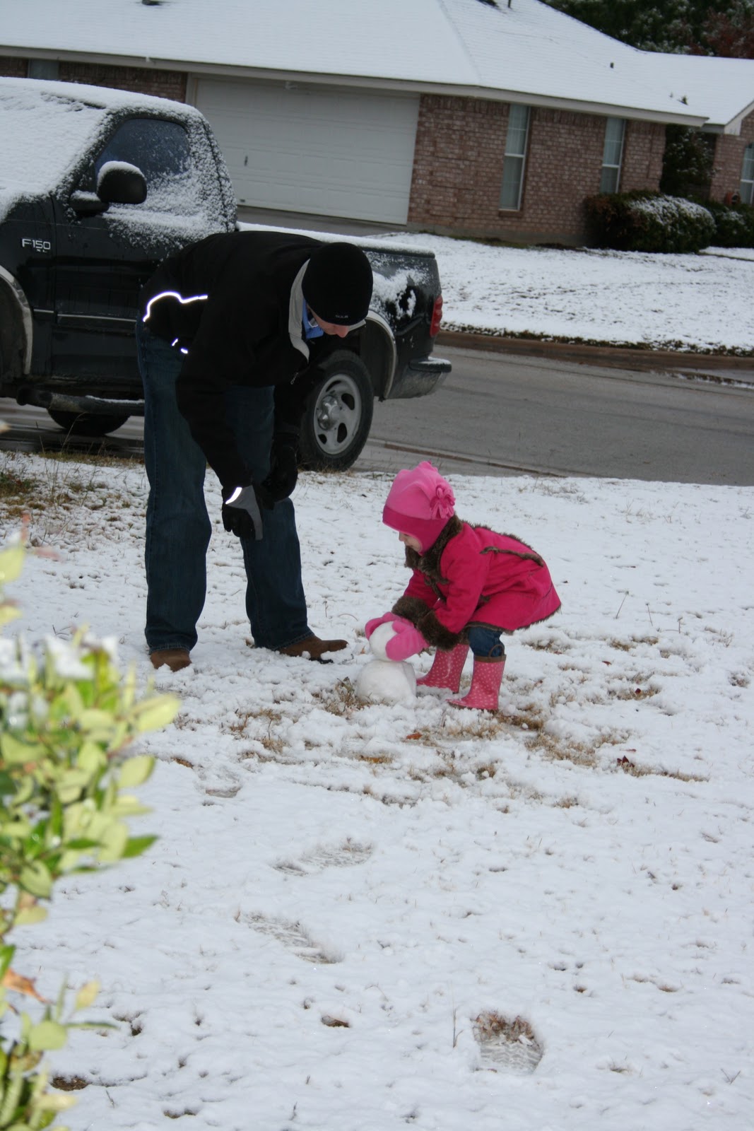 Building a (very tiny) snowman.